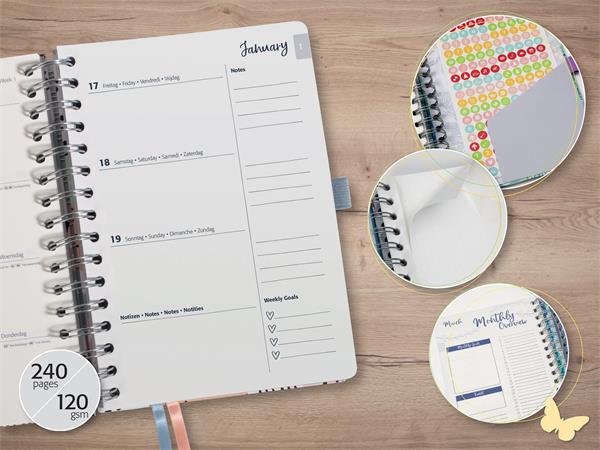 Diár, špirálový, A5, týždenný, 2025, tvrdá obálka, SIGEL "Jolie", Flower love