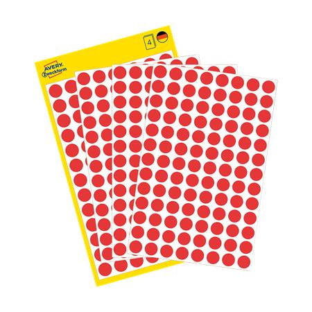 Etikety, okrúhle, priemer: 8 mm, odstrániteľné, AVERY ZWECKFORM, červené, 416 etikiet/bal