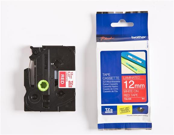 Etiketovacia páska, 12mmx8m, BROTHER, "TZe-435", červeno-biela