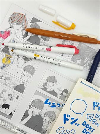 - obsah sady: 1 omaľovávanka, 1 hárok nálepiek, 3 ks zvýrazňovačov Mildliner Highlighter (tmavomodrá, zlatá, červená), 2 ks gélové perá Sarasa Clip (tmavomodrá, žltá), Zvýrazňovač Mildliner