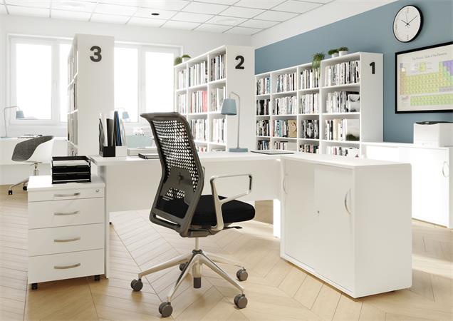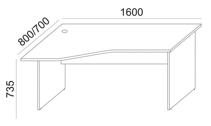 Písací stôl, oblúkový, ľavý, s plochými nohami, 160 × 80 cm, MAYAH „Freedom SV-24“, biela