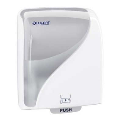 Dávkovač s automatickým rezaním papiera, určený pre papierové utierky s recyklovanou kartónovou dutinkou. - automatický systém s rezacím nožom - rozmery odrezaného listu: 26,5 cm (dĺžka) - rozmery: 380 (výška) x 301 (šírka) x 222 (hľbka) mm - farba: biela, priehľadná - kompatibilné papierové utierky: UBC109, UBC110, UBC111, UBC112, UBC113 (EcoNatural, Eco, Strong)