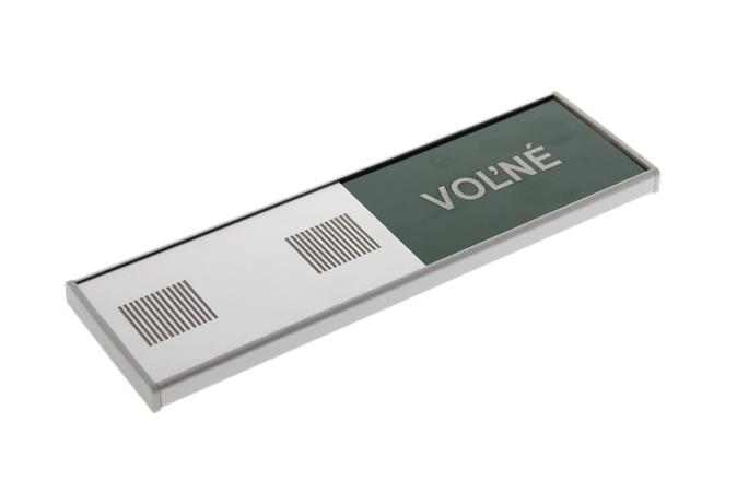 "Voľné/Obsadené" hliníková nástenná tabuľa, vhodná na umiestnenie vedľa kancelárskych dverí alebo pred rokovacie miestnosti.