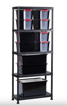 Objavte vynikajúci prepracovaný systém na uskladnenie väčších i menších predmetov prehladne a prakticky. Police sú odolné a jednoducho a rýchlo zmontovateľné. - nosnosť: 25 ks/polica -zvýšené nohy -materiál: odolný plast - farba: čierna - rozmery: 75x32x176 cm (šírka x hĺbka x výška) - hmotnosť: 5,1 kg