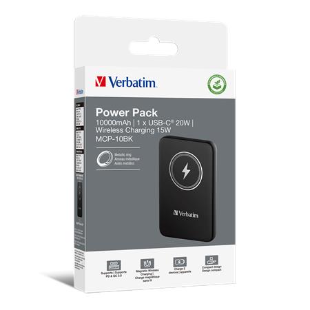 Prenosná batéria, bezdrôtové nabíjanie, 10000 mAh, VERBATIM "MCP-10, čierna